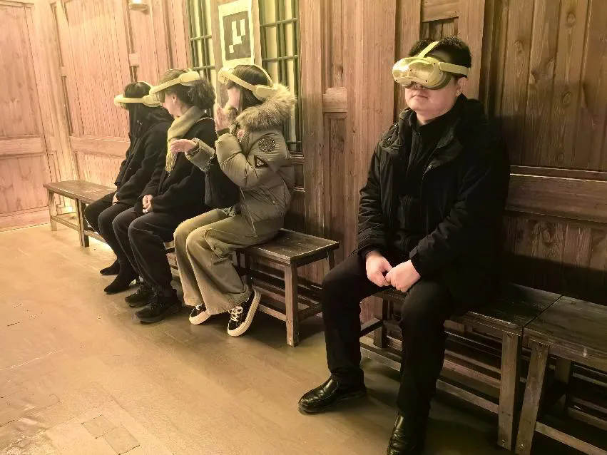 会后,在张少锋的带领下,参访团队实地体验了公司标杆项目——《唐朝诡事录・西行》XR全感沉浸剧场。该项目以热门影视IP为蓝本,融合XR技术与实景演绎,通过专业设备构建虚实交织的盛唐探案场景,让体验者化身剧中角色,在互动解谜中感受传统文化与科技融合的独特魅力。唐风置景的细节营造、剧情故事的生动讲述以及XR技术的多维感官冲击,既直观展现了文化产业创新趋势,也让参访人员切实看到了学院人才培养与行业需求的契合之处。